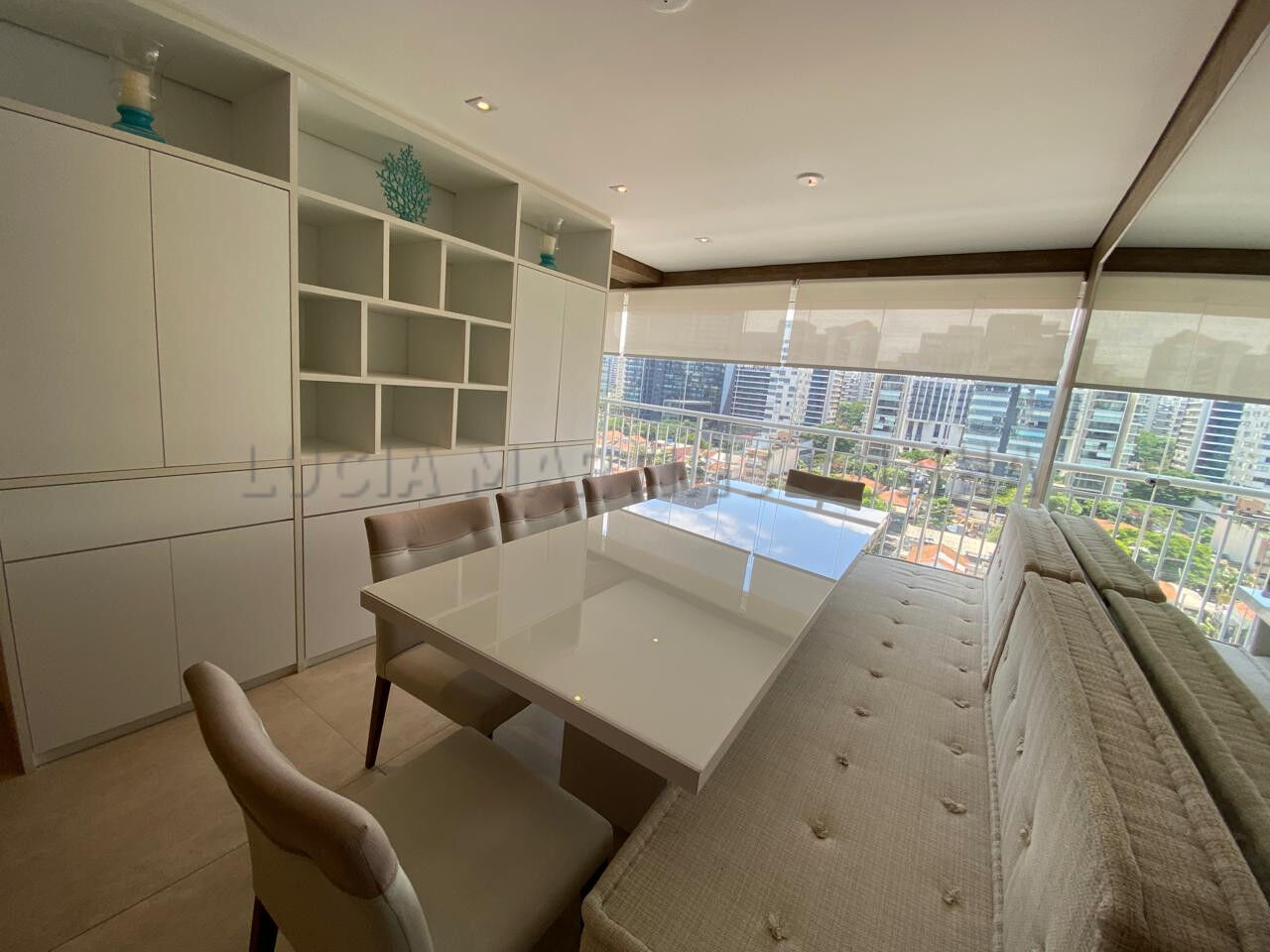 Apartamento com ar-condicionado em todos os ambientes e varanda envidraçada. Cozinha, sala, quartos, banheiros, sala de jantar e varanda, todos mobiliados, decorados e equipados. Pronto para morar